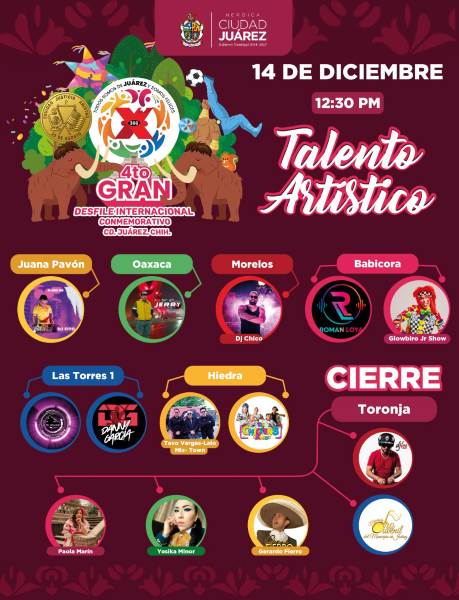 Anuncian programa artístico para el Gran Desfile Conmemorativo del 14 de diciembre