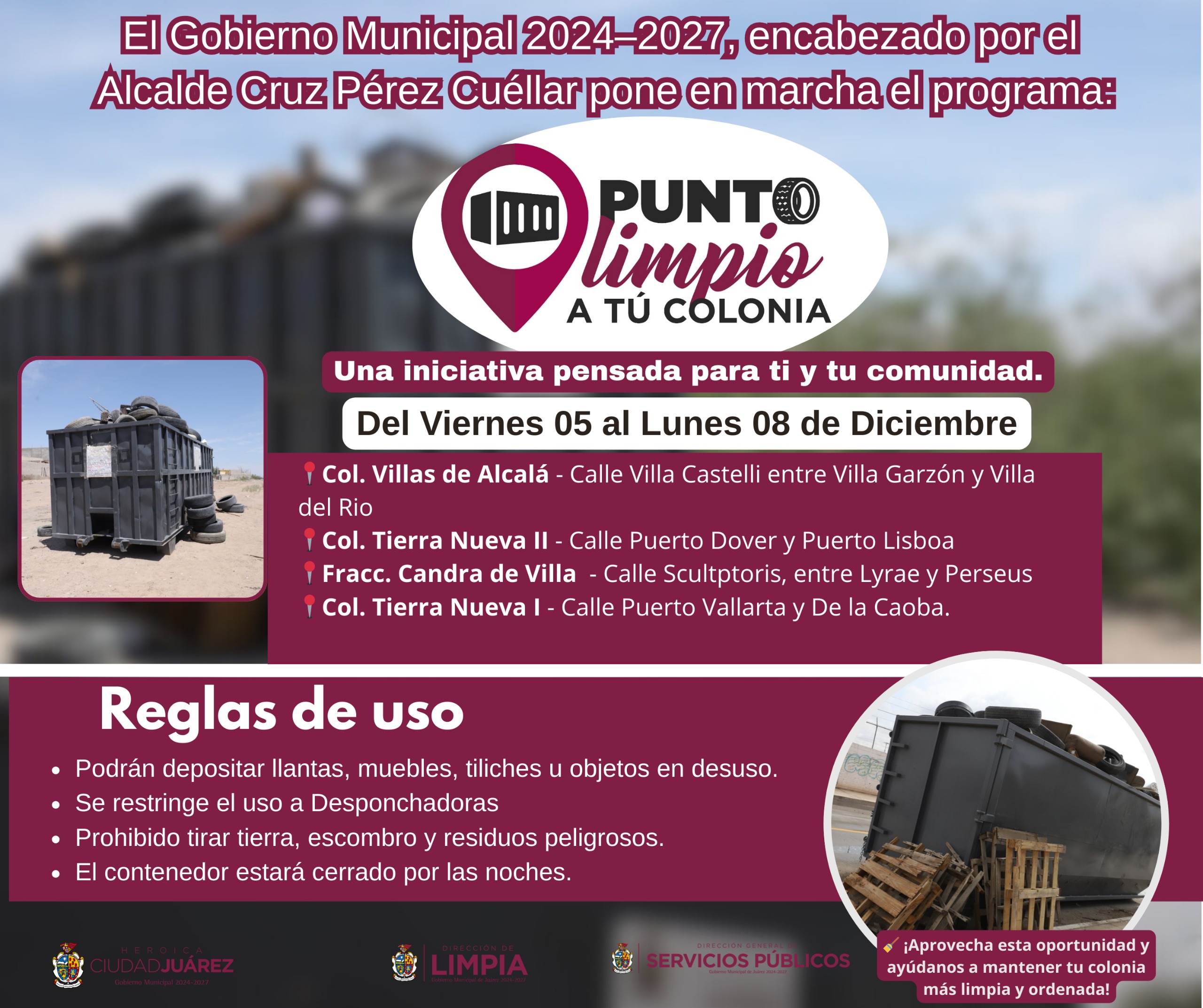 Contenedores estarán disponibles hasta el 8 de diciembre para recibir residuos voluminosos