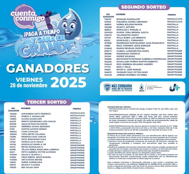 J+ publica lista de ganadores del sorteo “Paga a Tiempo y Gana en Grande”