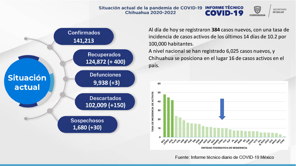 En las últimas horas, reportaron 334 nuevos contagios, mientras que Juárez confirmó 32 nuevos casos