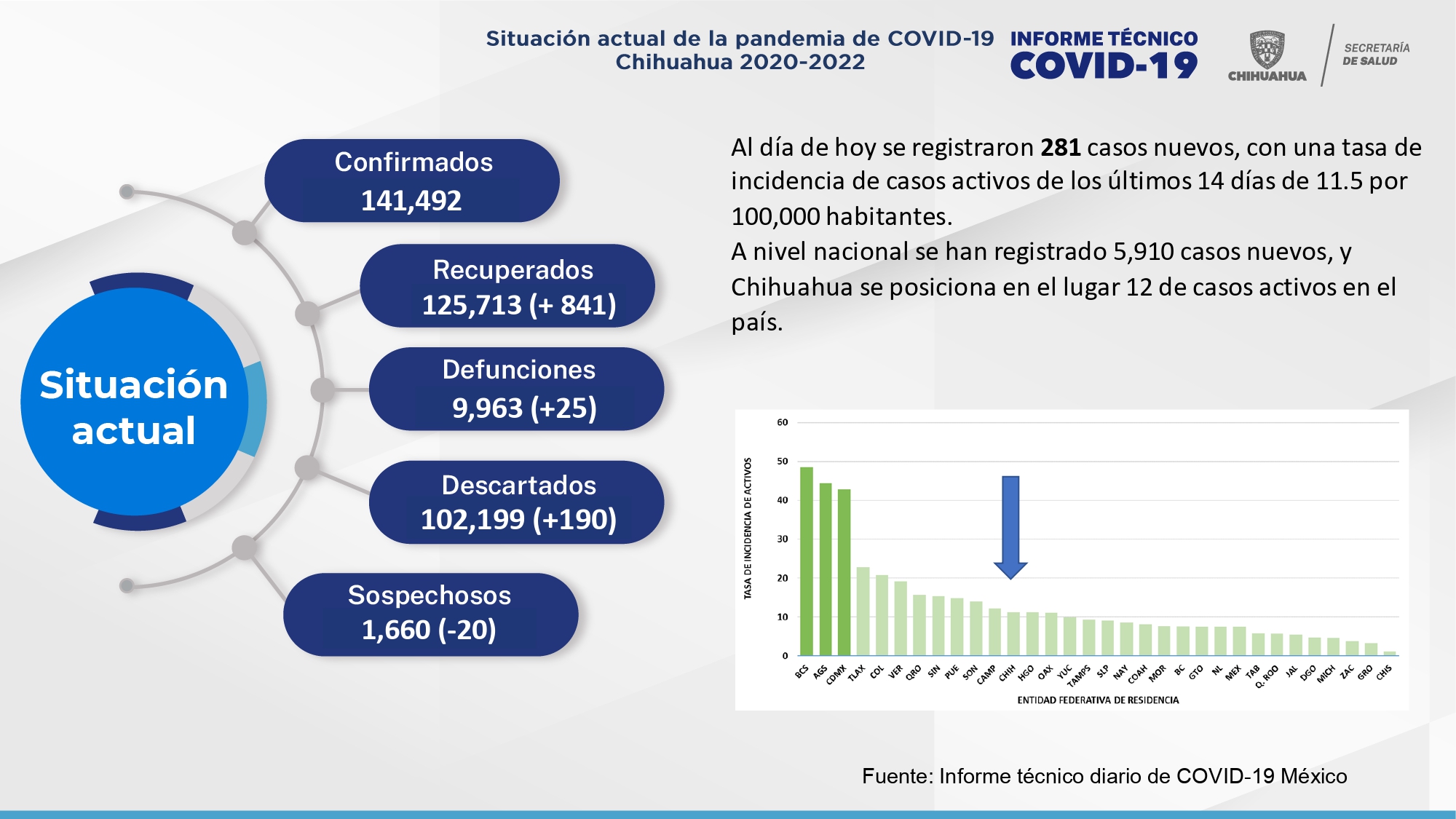 En las ultimas horas se confirmaron 281 nuevos casos de los cuales 63 fueron en Juárez y 5 muertos, mientras que en Chihuahua capital fueron 180 nevos contagios y 12 muertos