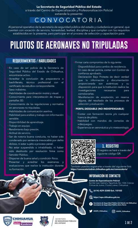 Emitieron convocatoria al personal operativo de la Secretaría de Seguridad Pública del Estado y a la ciudadanía en general, con conocimientos básicos en el manejo de este tipo de artefactos