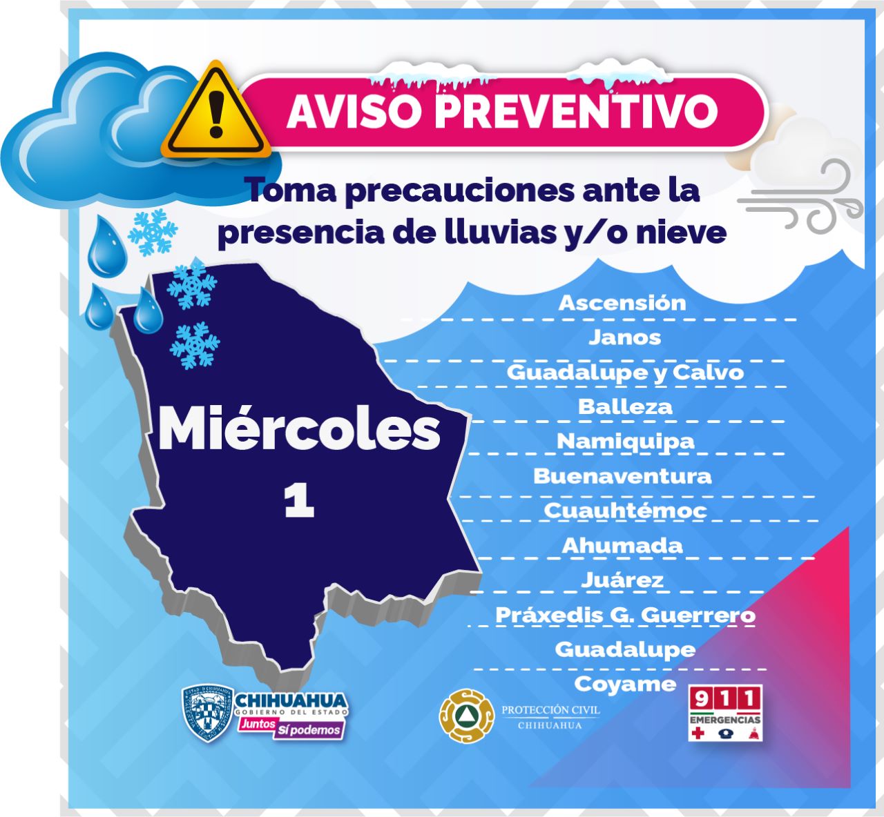 Ingreso de Quinta Tormenta Invernal y frente frío 29 traerán lluvias, nieve y fuertes vientos a partir de este martes en el estado: CEPC