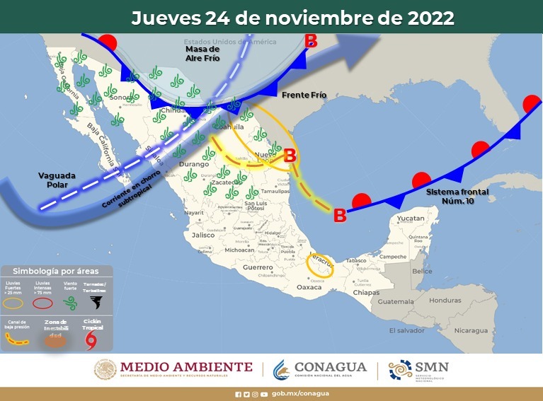 La Coordinación Estatal de Protección Civil, dio a conocer que para este próximo jueves 24 de noviembre se espera que ingrese al estado el Frente Frío número 11