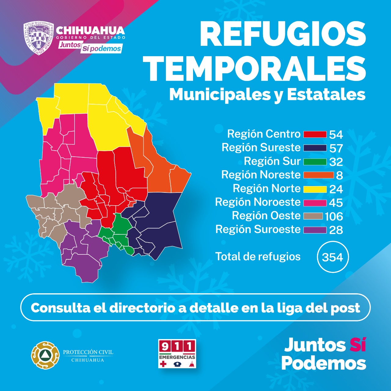 Se encuentran habilitados los 354 refugios temporales del estado para recibir a la población que los necesite