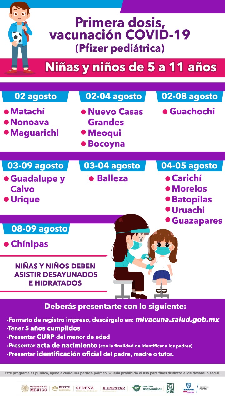 En 16 municipios se aplicarán primeras dosis de Pfizer pediátrica a niños entre 5 y 11 años