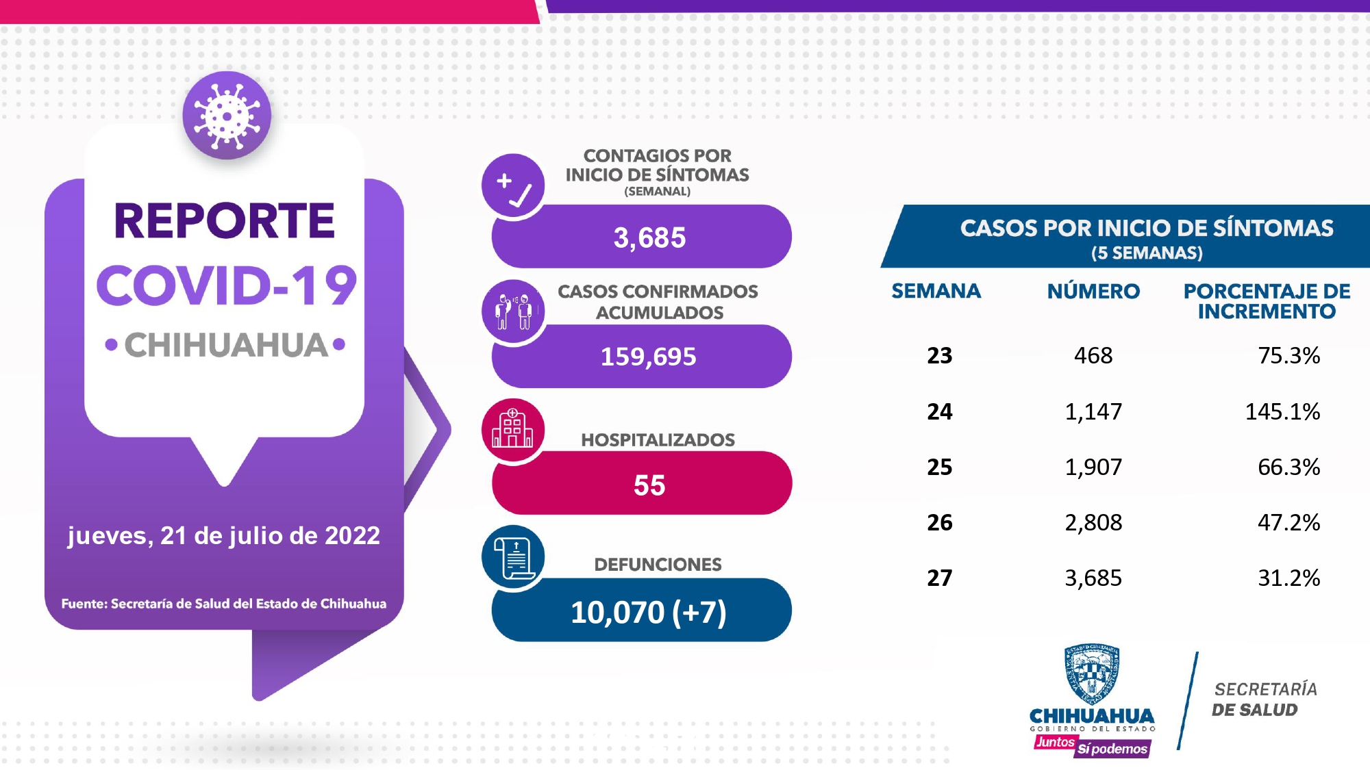 En el estado se registraron 2 mil 400 nuevos casos y una muerte en Cuauhtémoc