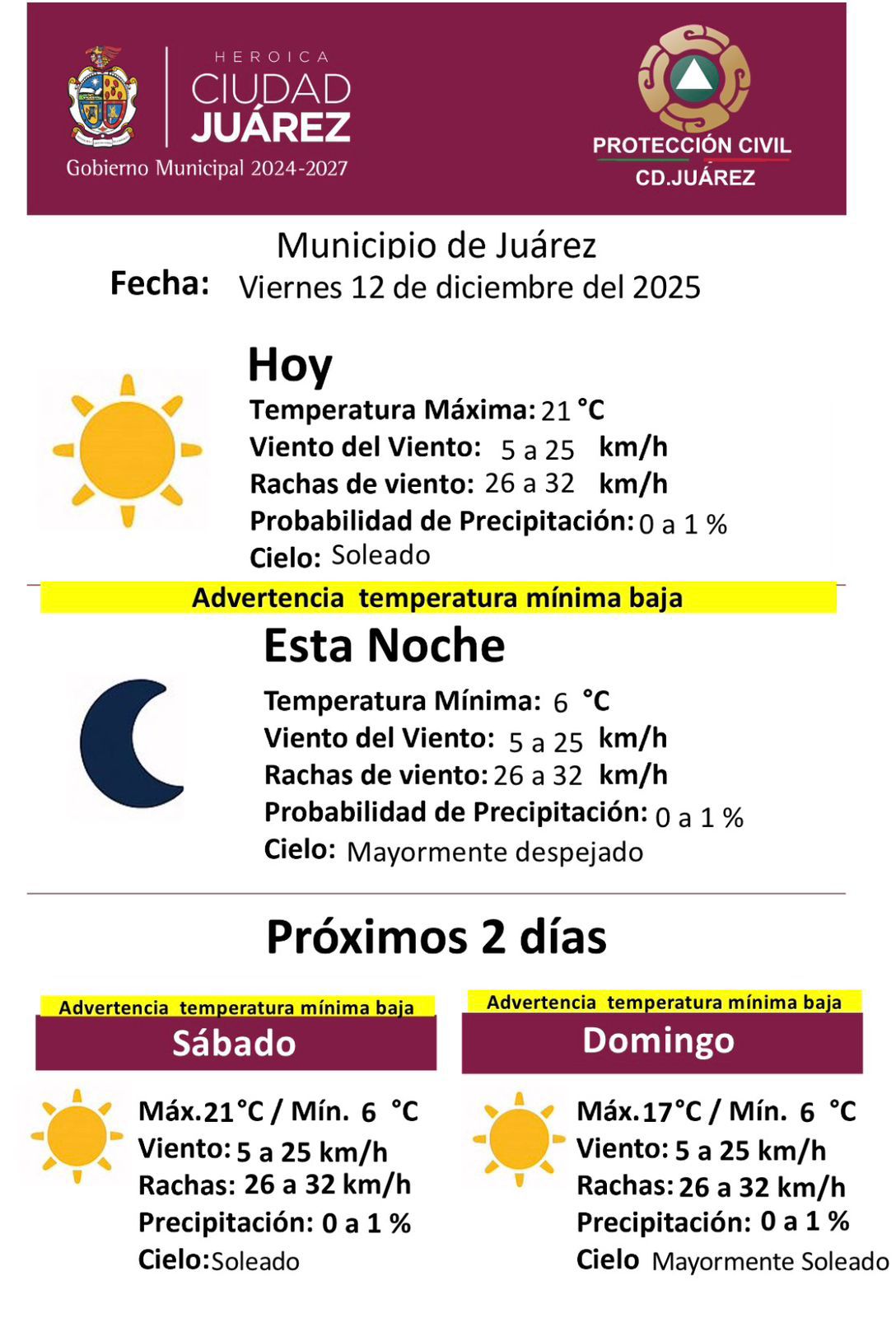 Protección Civil alerta por descenso de temperatura durante la noche