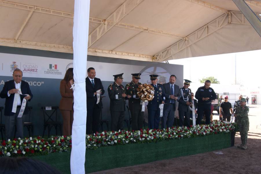En el corte del listón inaugural de la exhibición, estuvieron presentes el alcalde Cruz Pérez Cuéllar; el Fiscal Carlos Manuel Salas; Santiago de la Peña; César Omar Muñoz, encargado de despacho de la Secretaría de Seguridad Pública Municipal; Rubí Enríquez, presidenta del DIF; Iván Antonio Acosta, comandante de la Base Aérea Militar 13; Baltazar Mancilla, jefe del 31 batallón policial