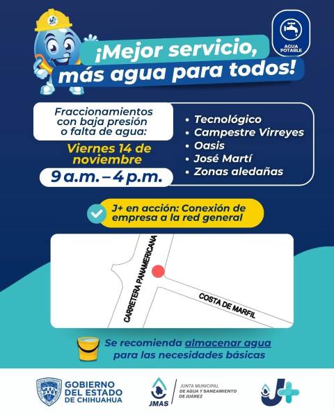 Los trabajos se realizarán este viernes y afectarán el servicio en varias colonias cercanas al bulevar Zaragoza