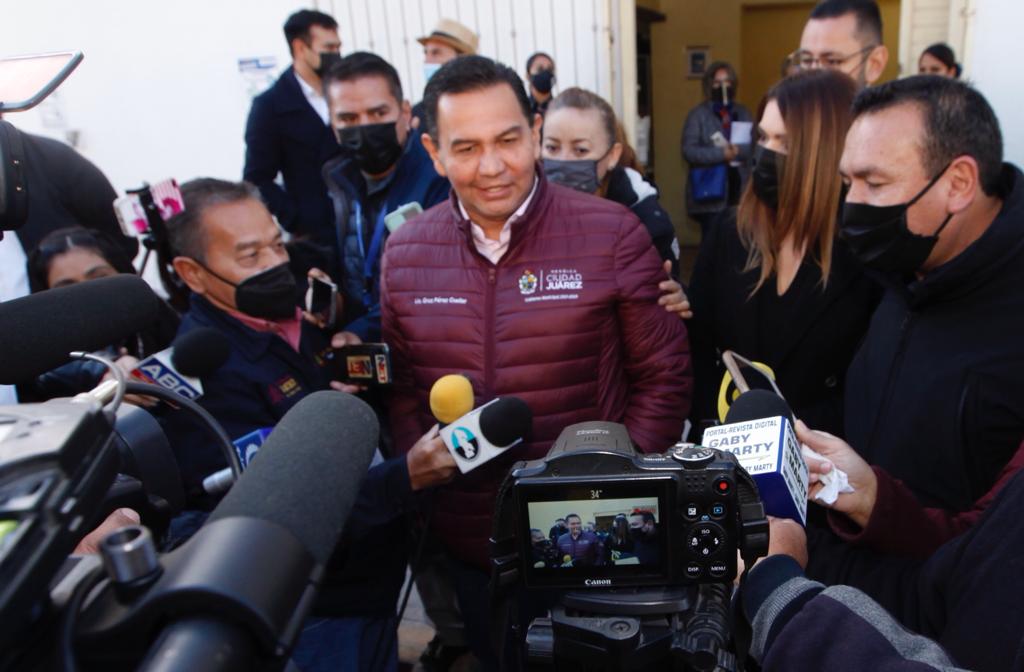 El Presidente Municipal, Cruz Pérez Cuéllar, acompañado de la presidenta del Sistema para el Desarrollo Integral de la Familia del Municipio de Juárez, Rubí Enríquez, inauguró el “Refugio temporal invernal”, para proteger de las bajas temperaturas a las personas en situación de calle