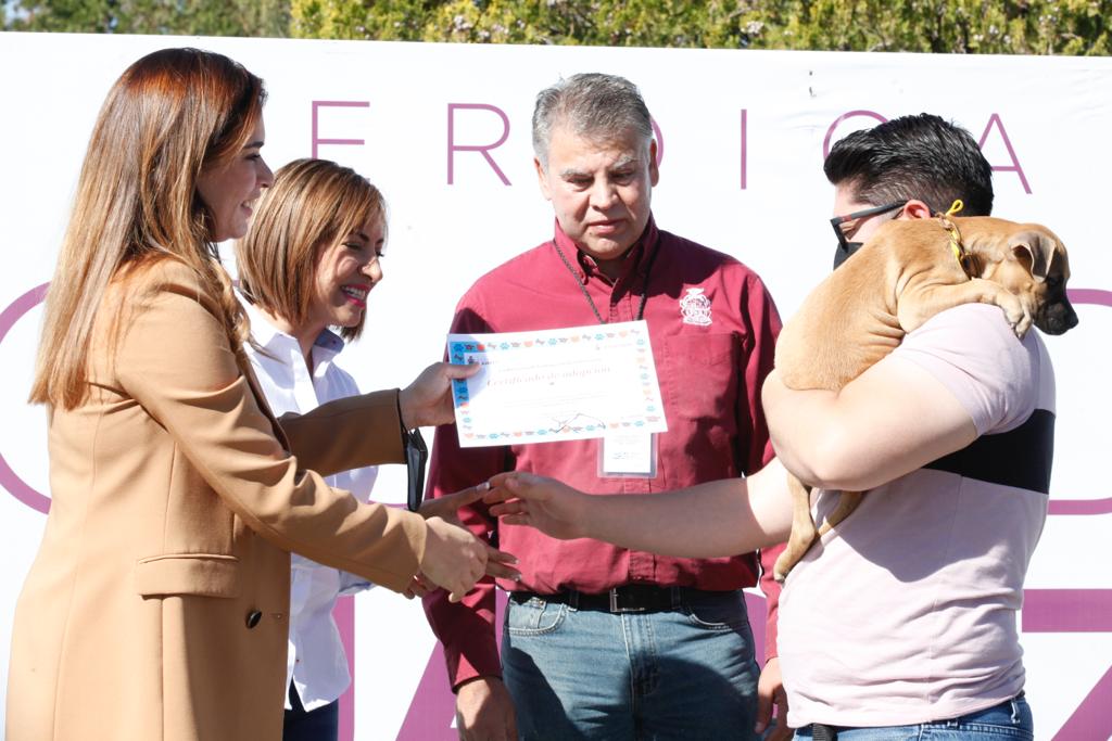Ahí la funcionaria y esposa del Presidente Municipal, Cruz Pérez Cuéllar, agradeció a quienes adoptaron un perro o gato antes de iniciar el evento y expresó que "es importante tomar conciencia de que los animalitos están en este mundo y nosotros para apoyarlos".