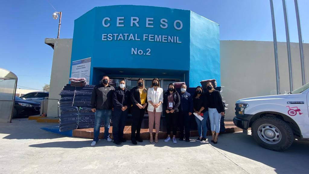 En apoyo a las internas del Centro de Reinserción Social Estatal Femenil número 2, la presidenta del Sistema para el Desarrollo Integral de la Familia del municipio (DIF), Rubí Enríquez les entregó cobertores y colchonetas