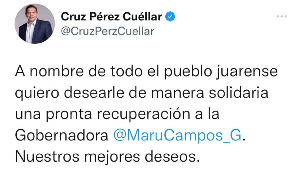 A través de las redes sociales, el alcalde Cruz Cuéllar, se solidarizó con la jefa del ejecutivo estatal, quien anunció que estabas contagiada de COVID