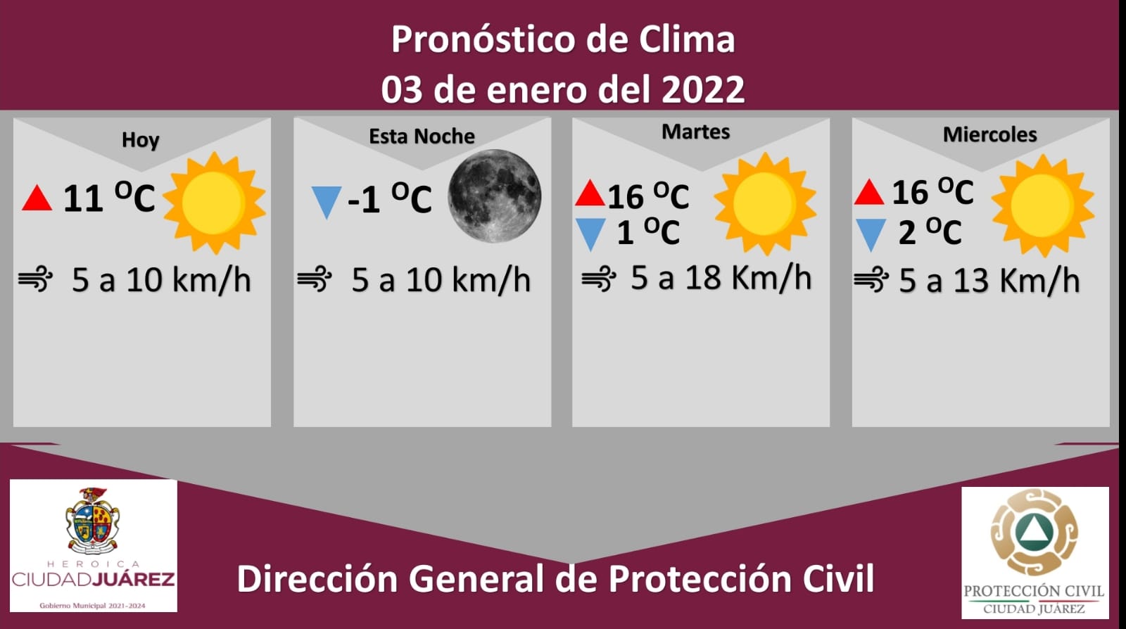 La Dirección de Protección Civil municipal, pronosticó una temperatura mínima de -1 grados centígrados para esta noche, en tanto que la máxima se presentará en los 11 grados Celsius