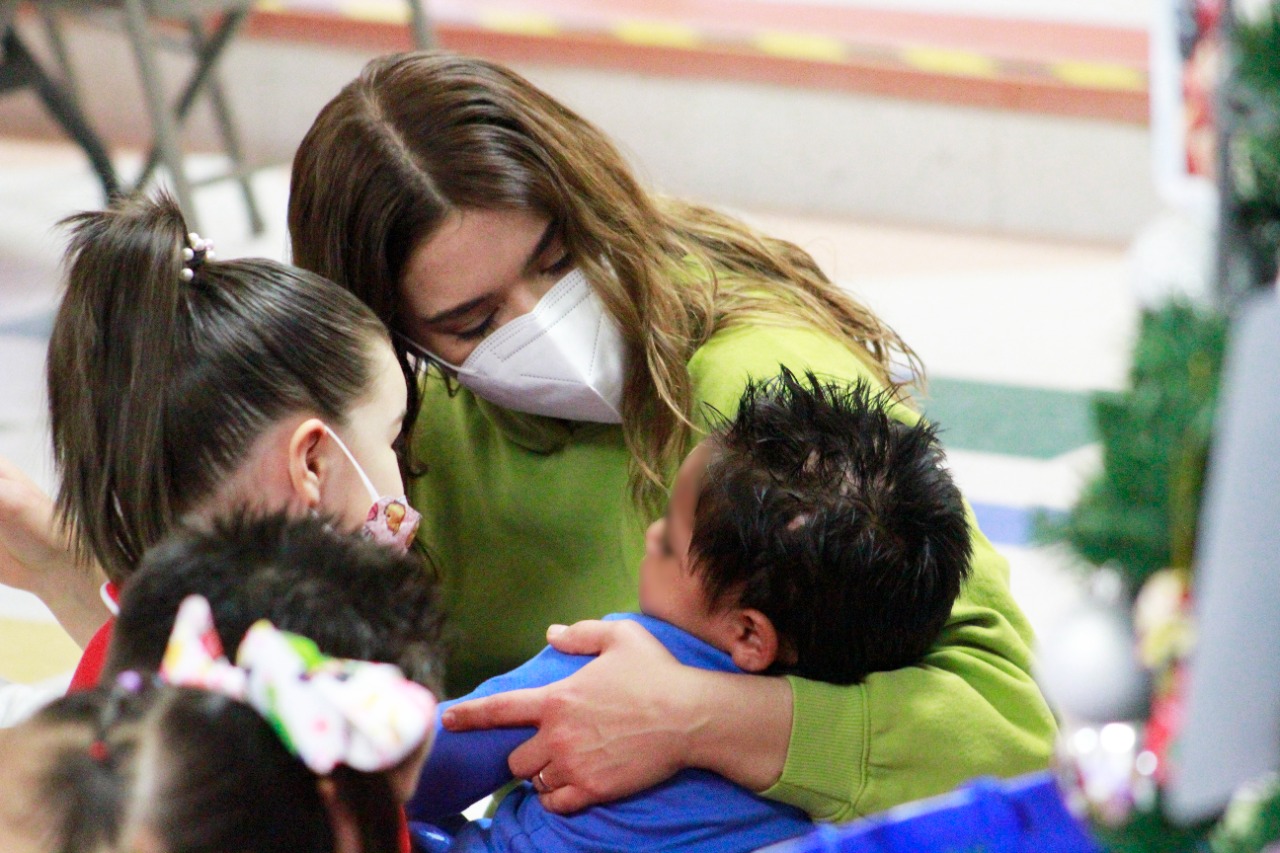 Una mañana repleta de sonrisas, bailes y sorpresas tuvieron las niñas y los niños del albergue Granja Hogar en la fiesta navideña que Rubí Enríquez, presidenta del Sistema para el Desarrollo Integral de la Familia del municipio de Juárez, les organizó esta mañana junto con el equipo de la institución