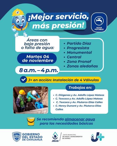 El trabajo se realizará este martes en varias colonias, por lo que se recomienda a los vecinos almacenar agua