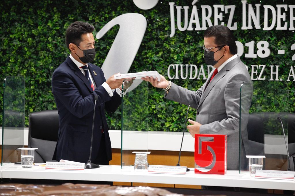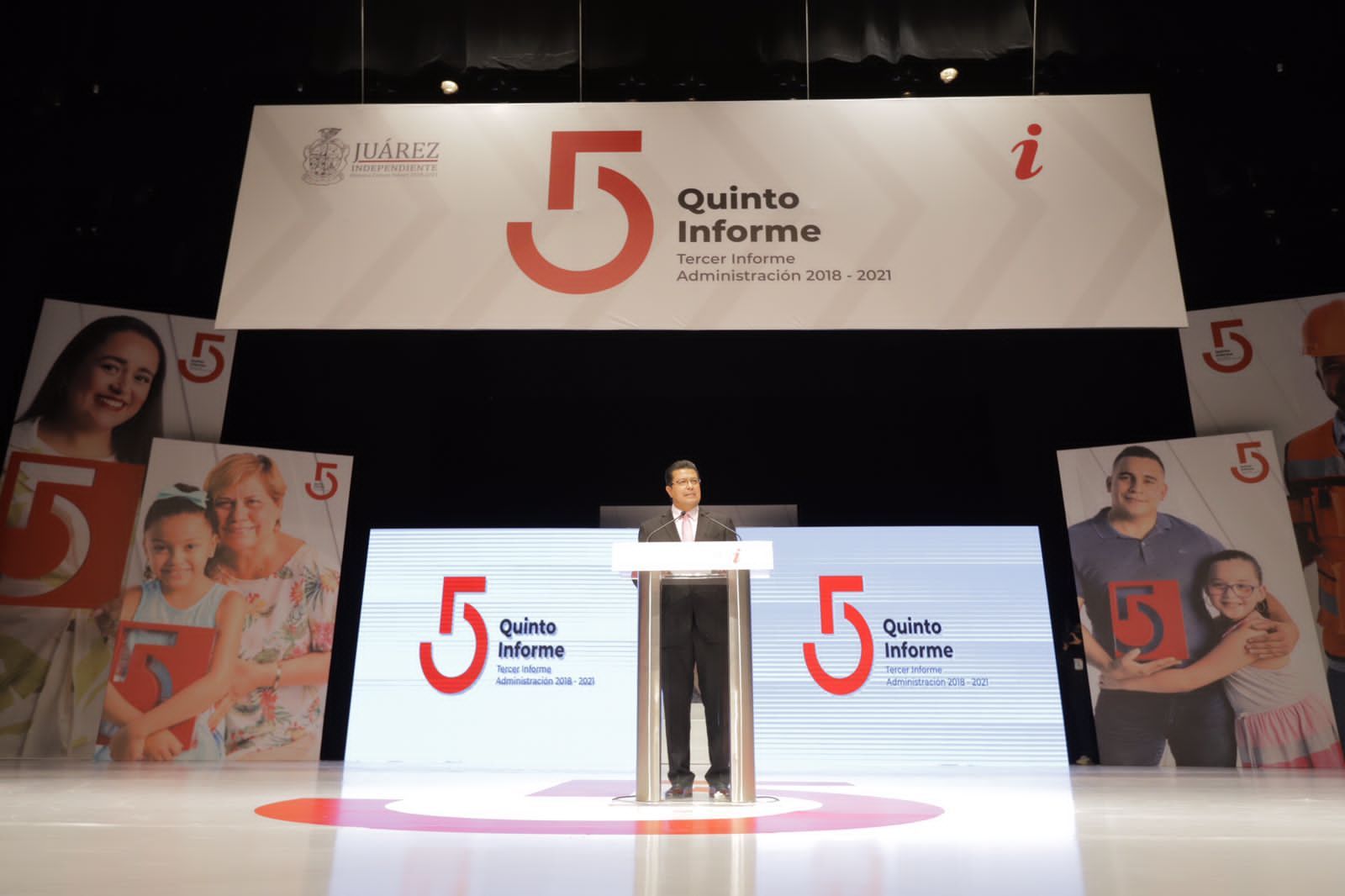 El teatro "Víctor Hugo Rascón Banda" del Centro Cultural Paso del Norte fue sede del evento, en donde el Alcalde presentó los avances y logros alcanzados durante su gestión como Presidente Municipal