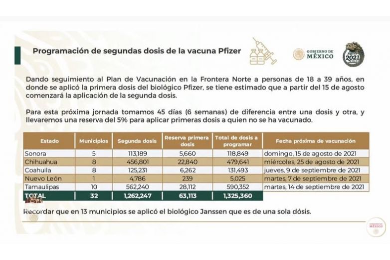 Antes de que finalice el presente mes se procederá a la aplicación de la segunda dosis de vacuna COVID