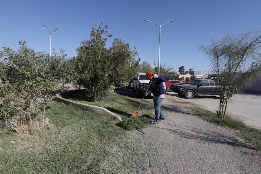 El personal municipal efectuó labores de mantenimiento en el parque lineal del fraccionamiento como parte de las acciones permanentes de conservación
