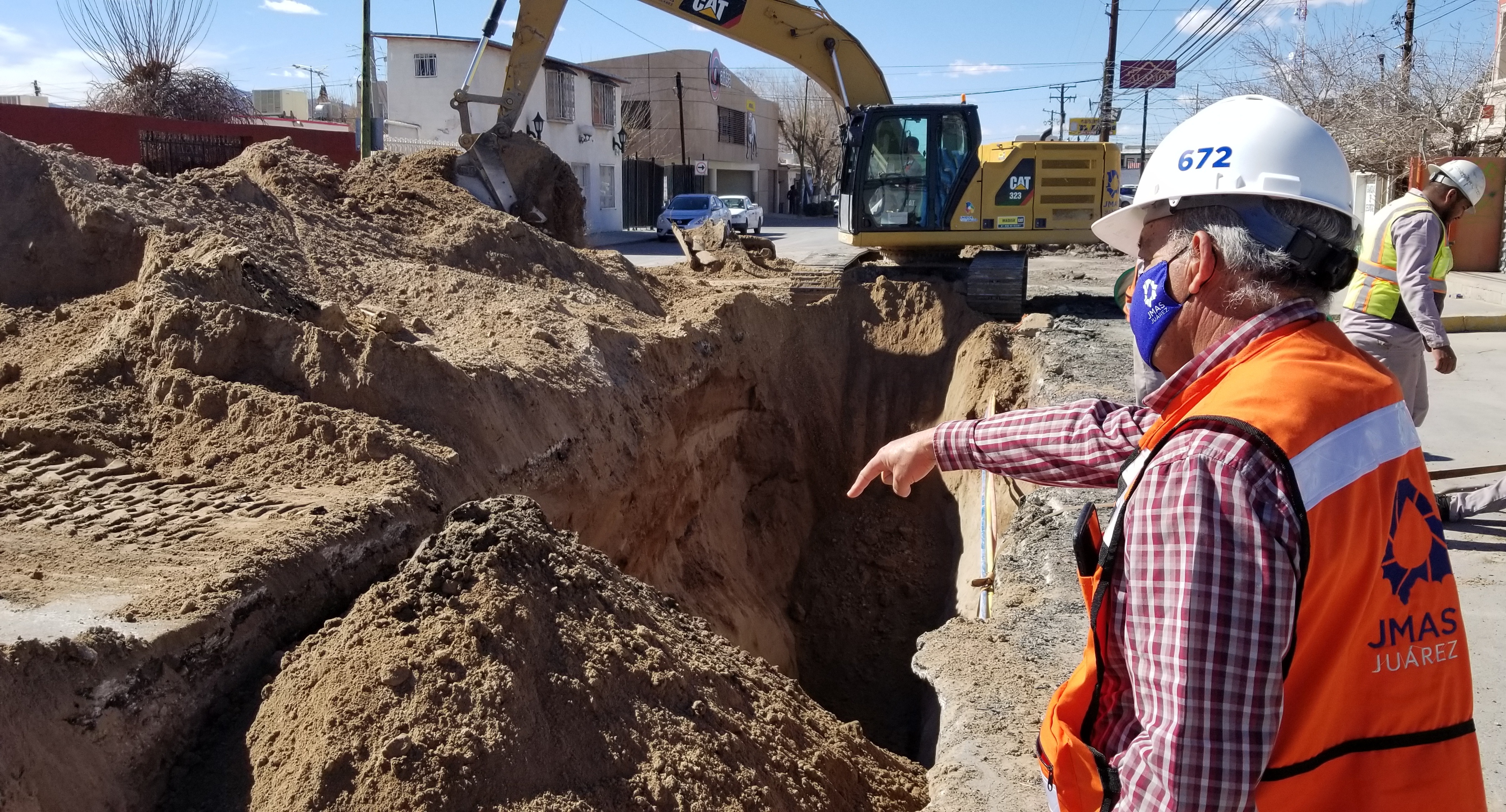La Junta Municipal de Agua y Saneamiento Juárez, lleva a cabo la reposición de parte del colector Simona Barba, debido a que la tubería existente en la zona ya terminó su tiempo de vida útil
