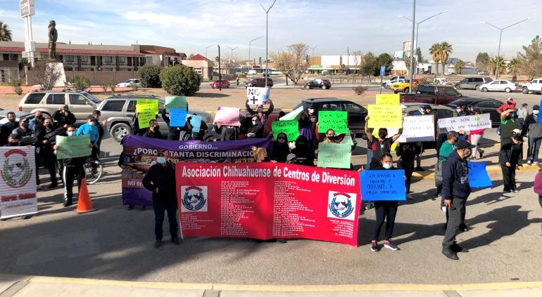 Con una marcha manifestación más de dos centeneras de personas entre empleados y propietarios de bares y centros de diversión nocturnos, exigieron al gobierno del estado autorice la reapertura de sus negocios