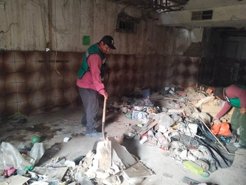 La Dirección de Limpia atendió una solicitud de Protección Civil para liberar el paso peatonal tras la demolición del edificio