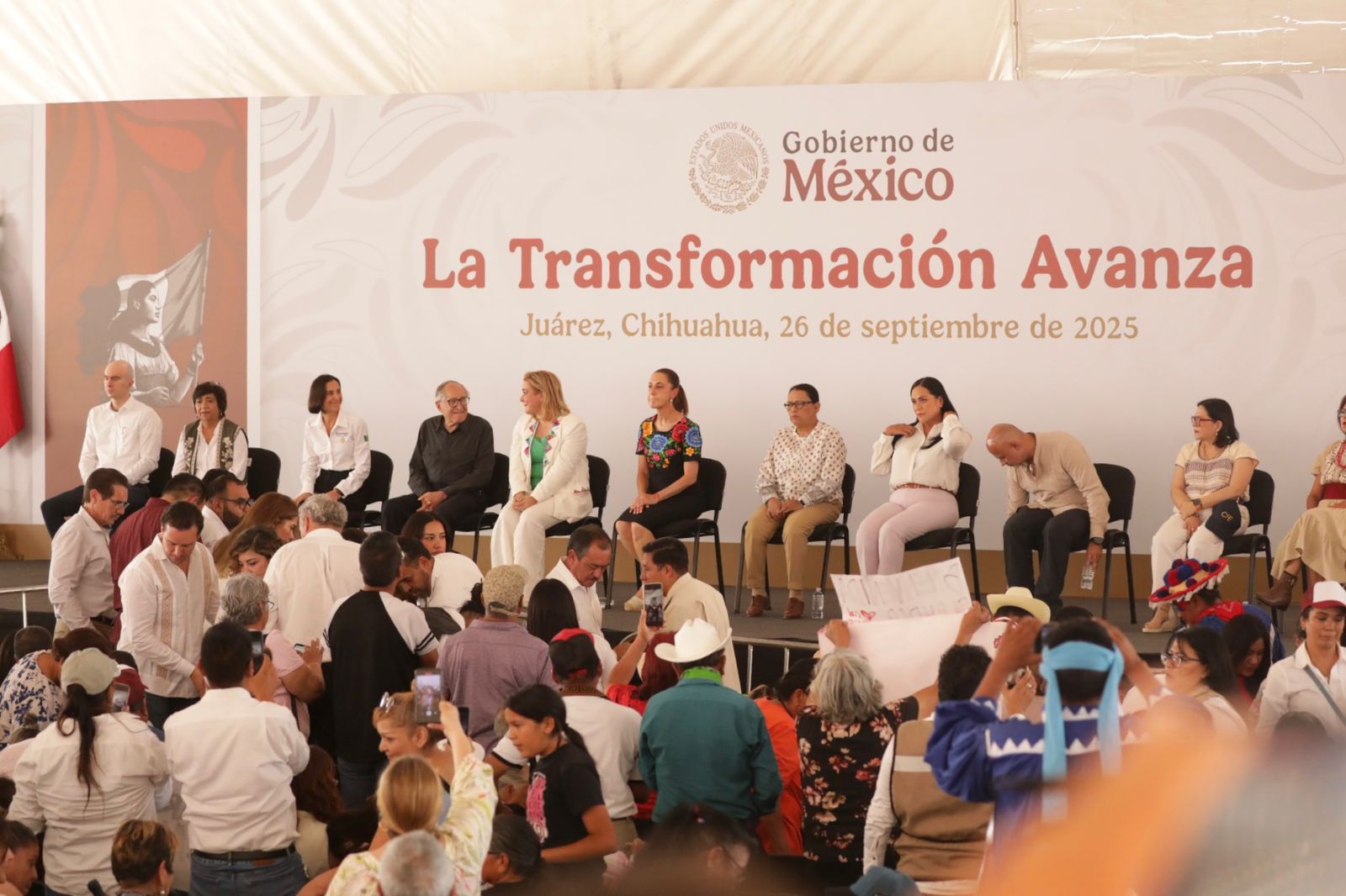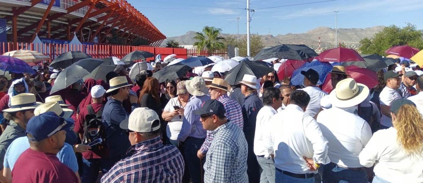 La mandataria presenta su primer mensaje público en Ciudad Juárez ante simpatizantes y ciudadanos de la región