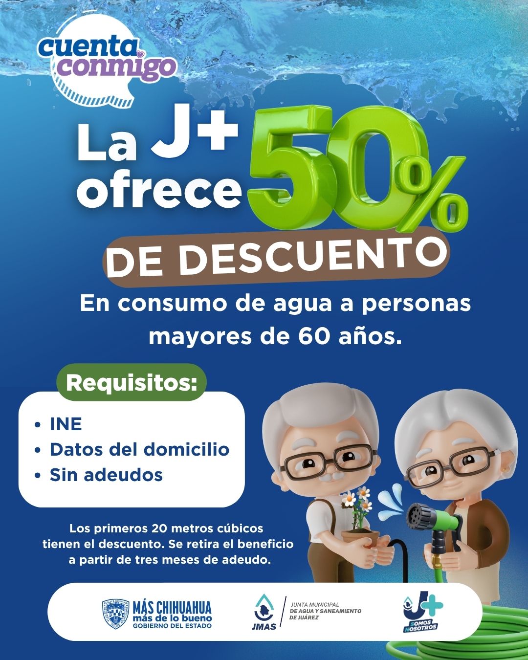 Beneficio consiste en aplicar el 50% de descuento en los primeros 20 metros cúbicos de consumo.