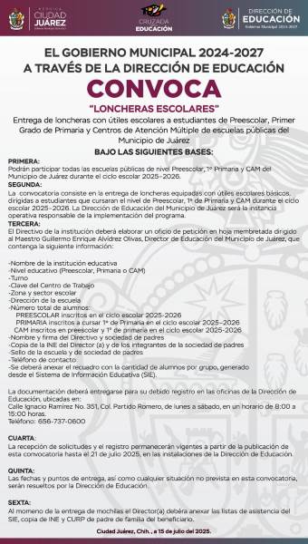 Dirección de Educación extiende 1 día convocatoria para entrega de mochilas y loncheras por cuestiones climatológicas y para beneficiar a más estudiantes