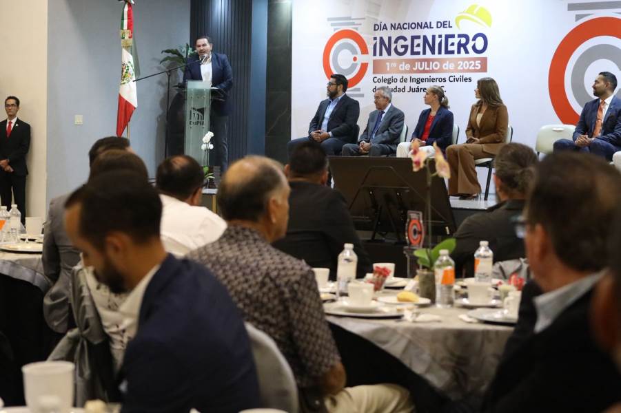 El Presidente Municipal, Cruz Pérez Cuéllar, acompañado de su esposa Rubí Enríquez. asistió a la celebración del Día del Ingeniero y la presentación del tercer informe de actividades del XXXI Consejo Directivo del Colegio de Ingenieros Civiles de Ciudad Juárez