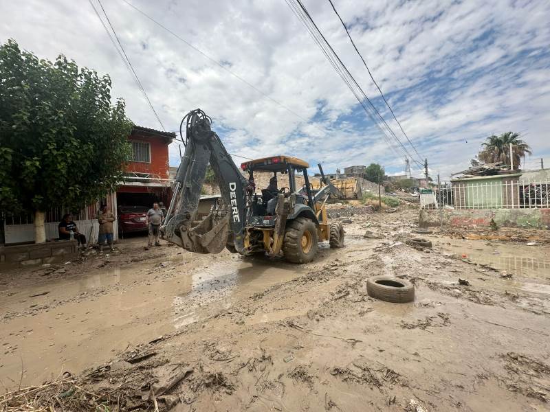 Personal de la Dirección General de Obras Públicas está trabajando en la limpieza de las calles que resultaron afectadas por las lluvias
