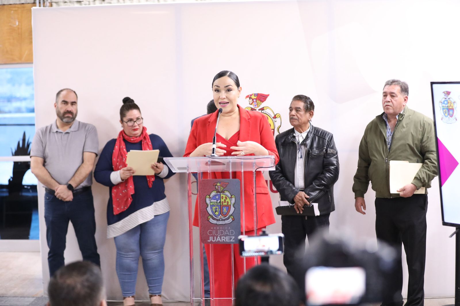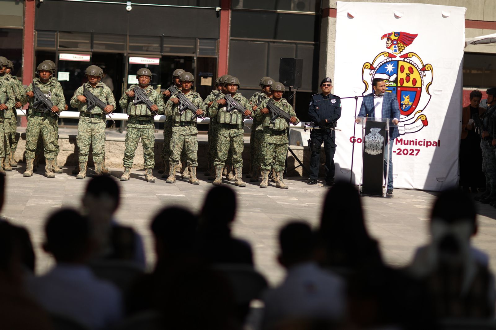 En el marco de la ceremonia de izamiento de bandera en la Unidad Administrativa “Lic. Benito Juárez”, el alcalde Cruz Pérez Cuéllar, refrendó su compromiso de seguir trabajando por esta frontera y por México