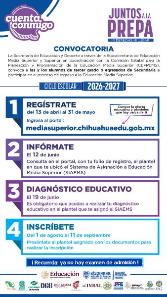 Asi es como tras la aprobación del Consejo Estatal de Salud del retorno a clases presenciales en escuelas de Educación Básica del Estado de Chihuahua, este lunes se tendrá un aforo del 50 por ciento en cada institución educativa del nivel de Preescolar, Primaria y Secundaria, tanto del nivel público o privado.