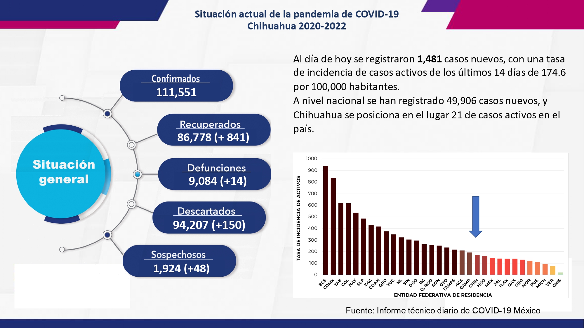 En las últimas horas se reportaron mil 130 nuevos contagios de los cuales 222 pertenecen a Juárez y 526 a Chihuahua capital