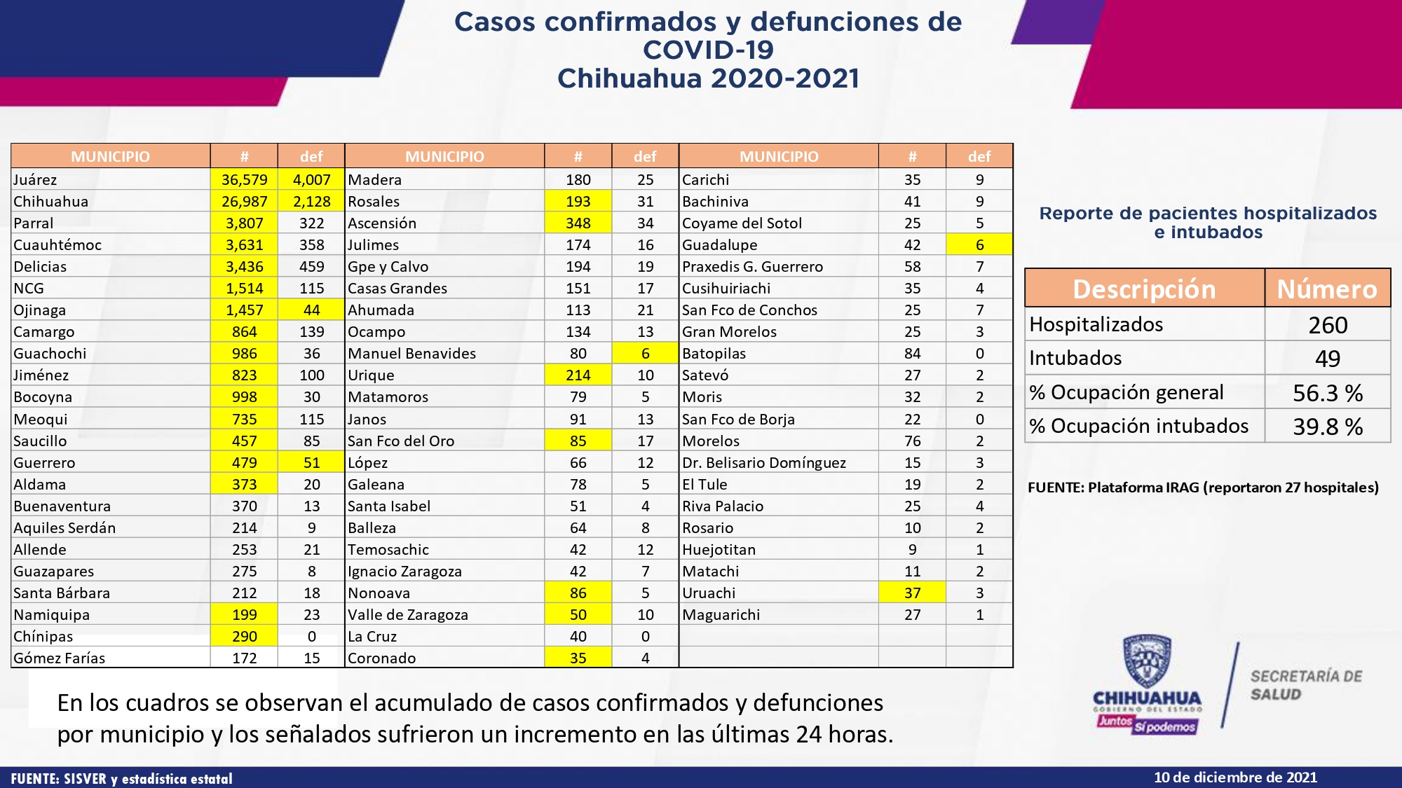 En cuanto a defunciones suman más de 4 mil las muertes registradas, lo que representa casi el 50 por ciento del total de defunciones que se han reportado en el estado
