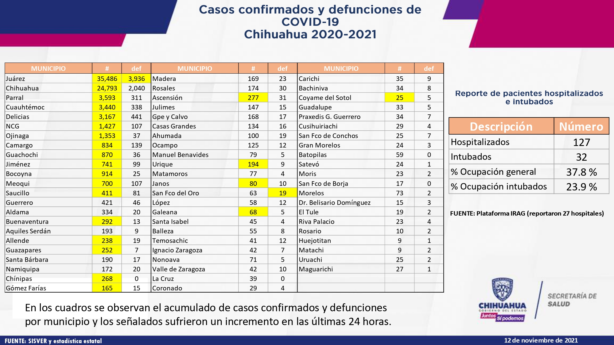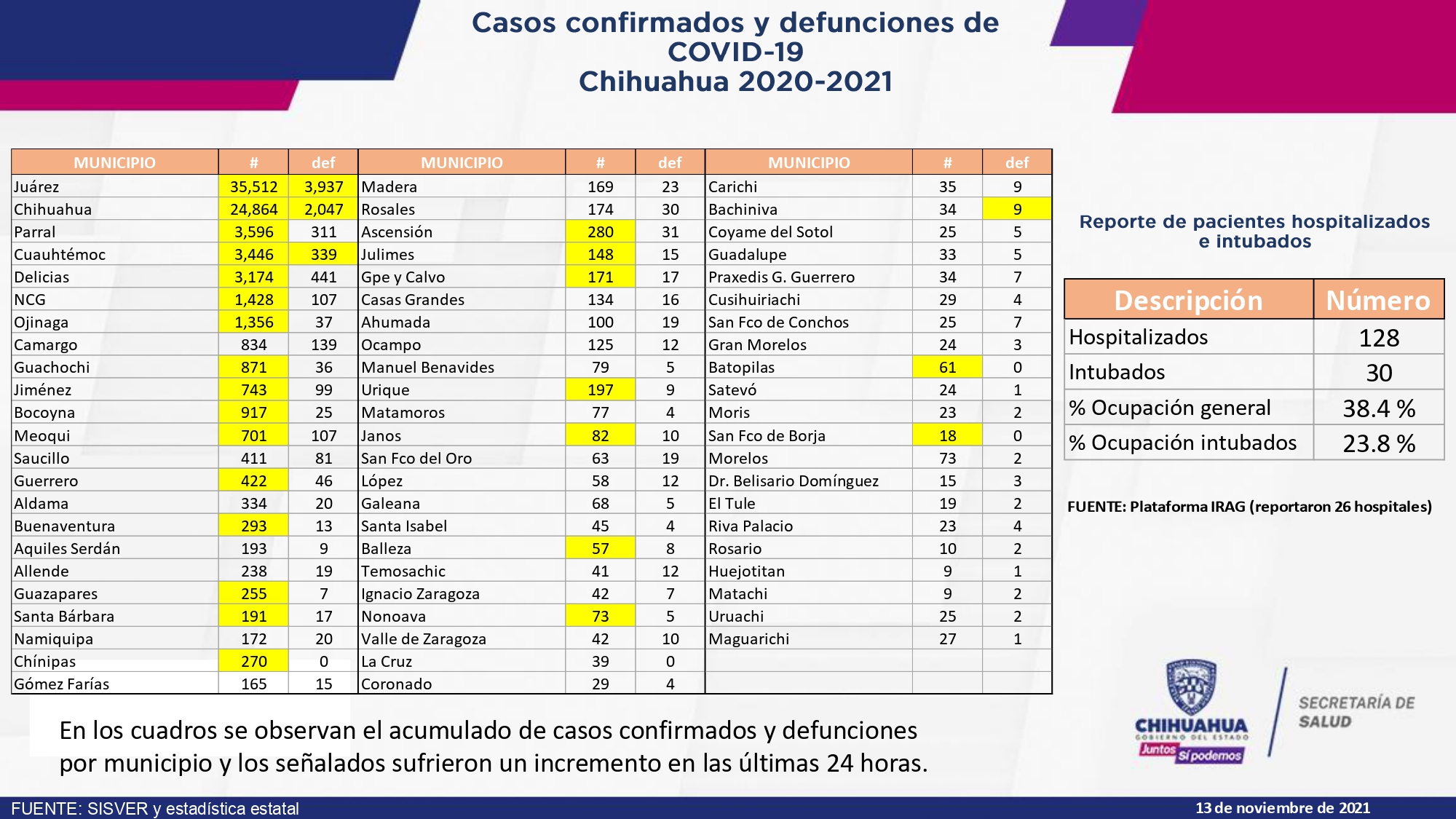 La Secretaría de Salud de Chihuahua, informó que as la fecha se tienen un registro de 83 mil 756 (+238) personas confirmadas en la entidad por este padecimiento