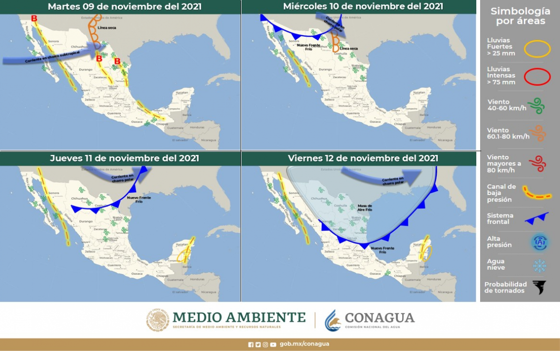 Bajas temperaturas y fuertes rachas de viento en las zonas norte y noreste; ingresará por el norte del estado