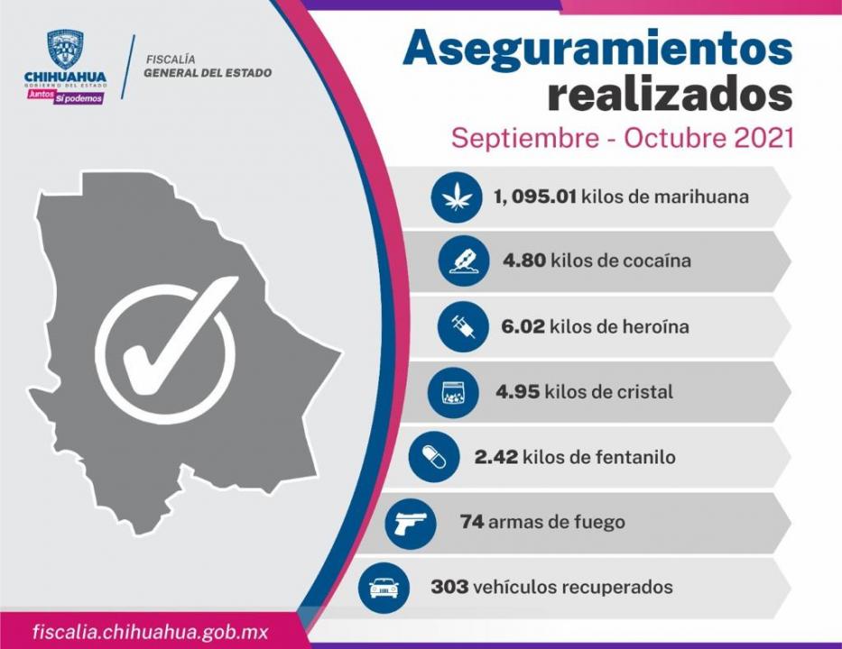 Los trabajos y las estrategias implementadas por la Fiscalía General del Estado en el combate a la impunidad y los delitos, tuvieron resultado exitosos en los meses de septiembre y octubre