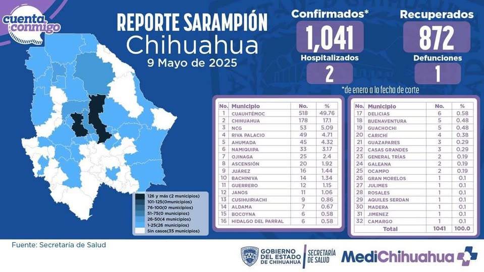 El estado de Chihuahua registra ya 1041 contagios de sarampión al sumarse 38 nuevos casos