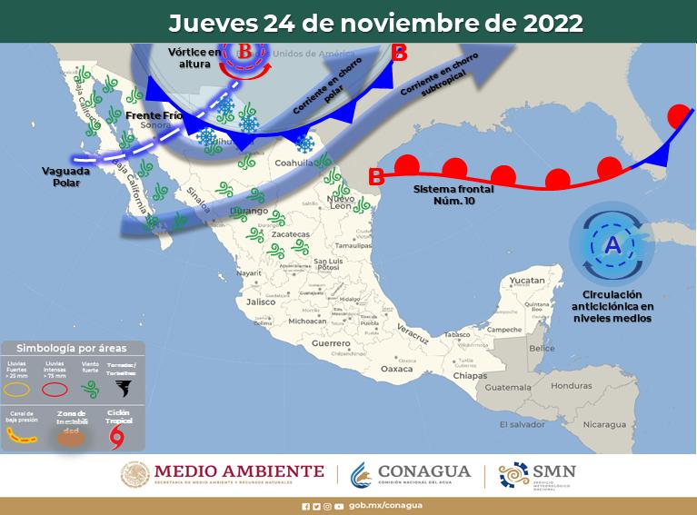 La Coordinación Estatal de Protección Civil, dio a conocer que para este próximo jueves 24 de noviembre se espera que ingrese al estado el Frente Frío número 11