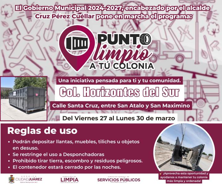 Contenedores estarán disponibles del 27 al 30 de marzo para disposición de residuos domésticos
